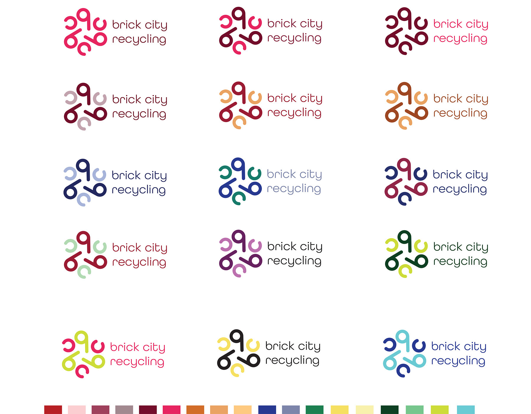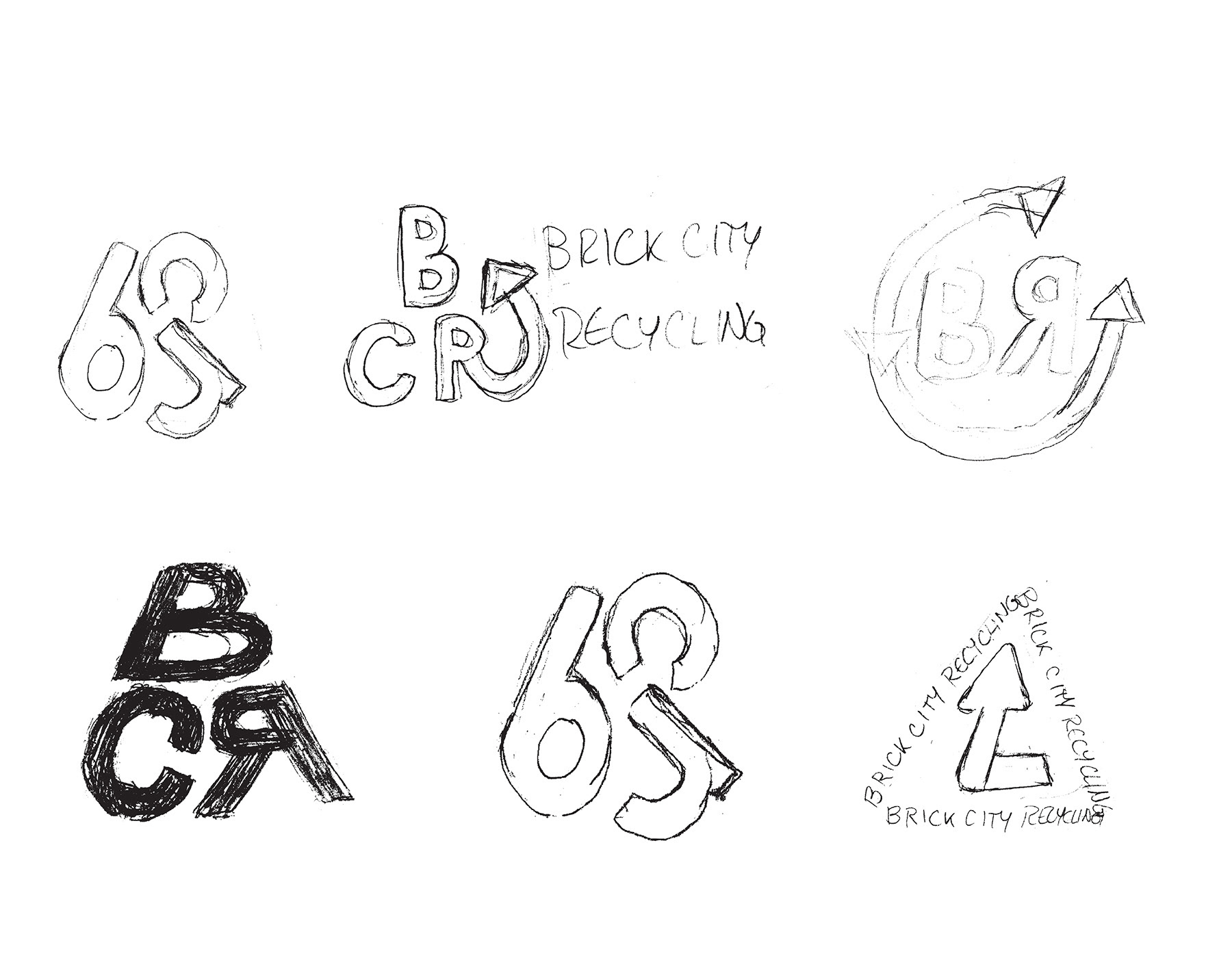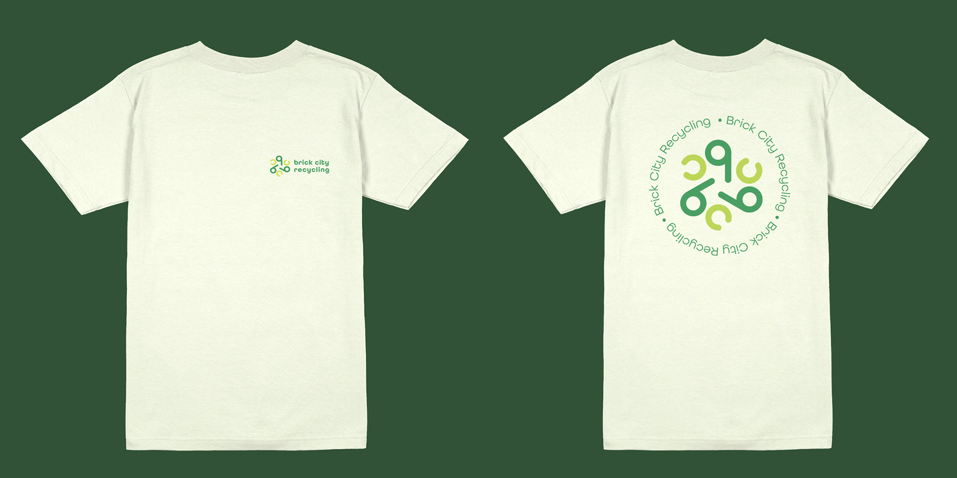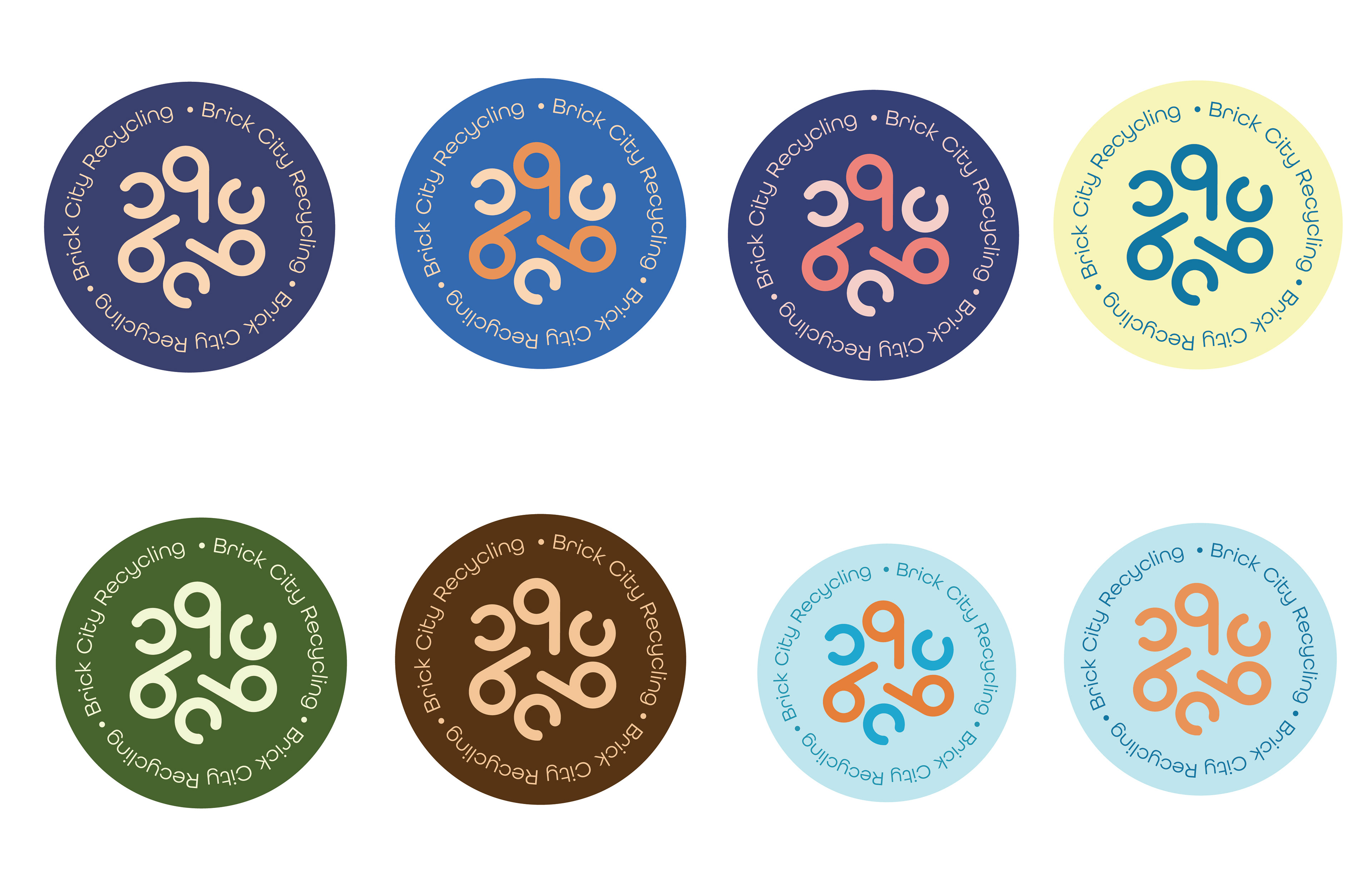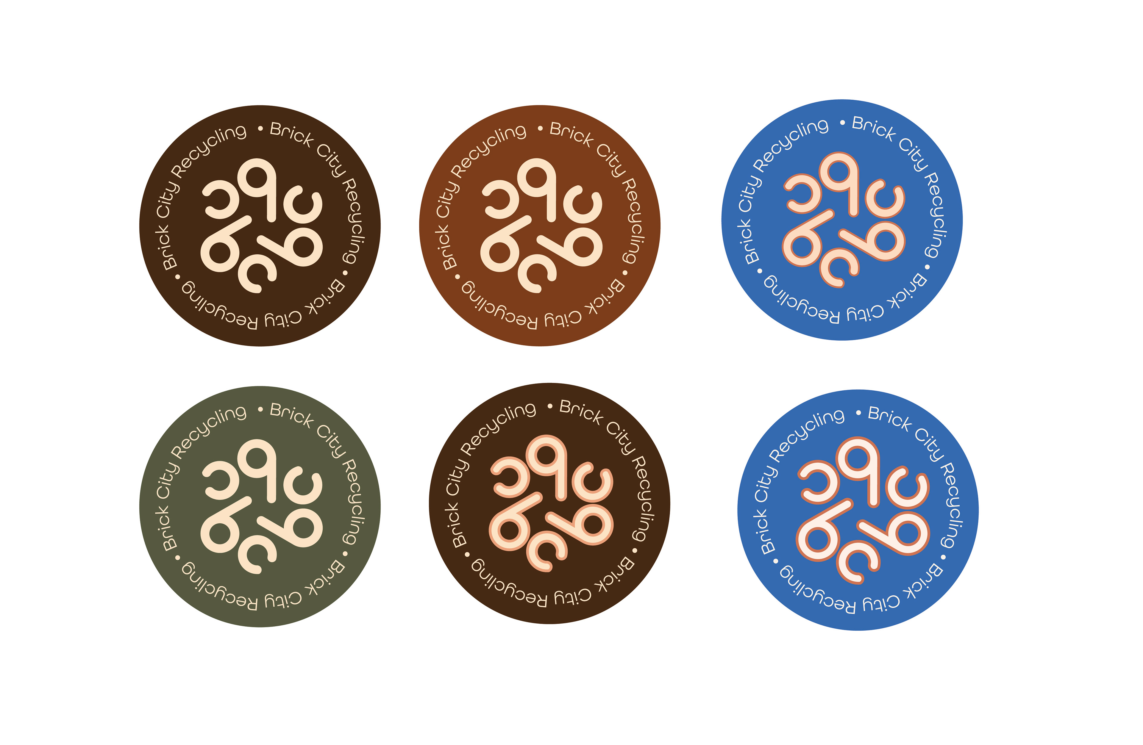 I paired this shape with the "brick city recycling text in All Round Gothic. The letters in the logo are custom, but have a similar construction to the All Round Gothic text used for the rest of the text.