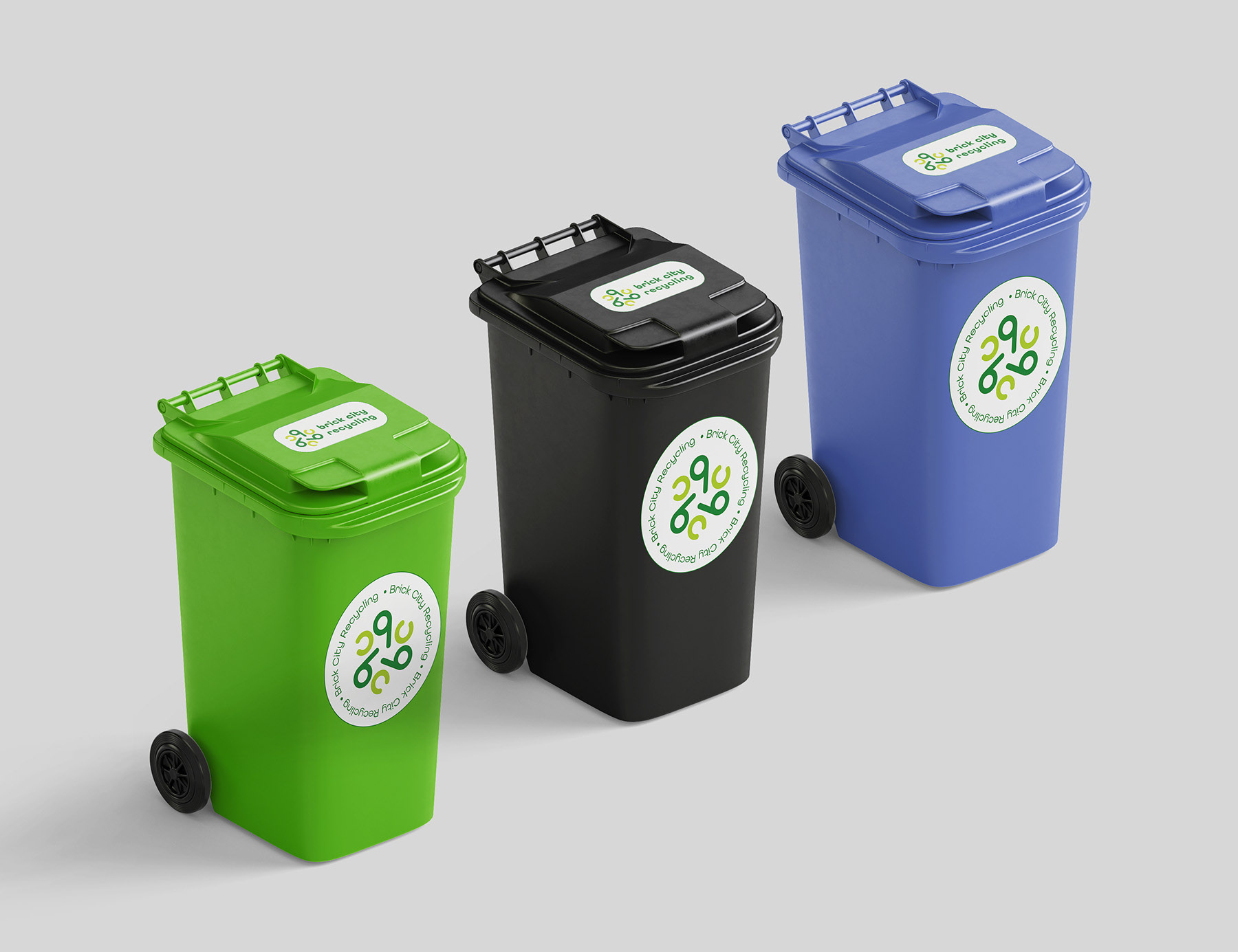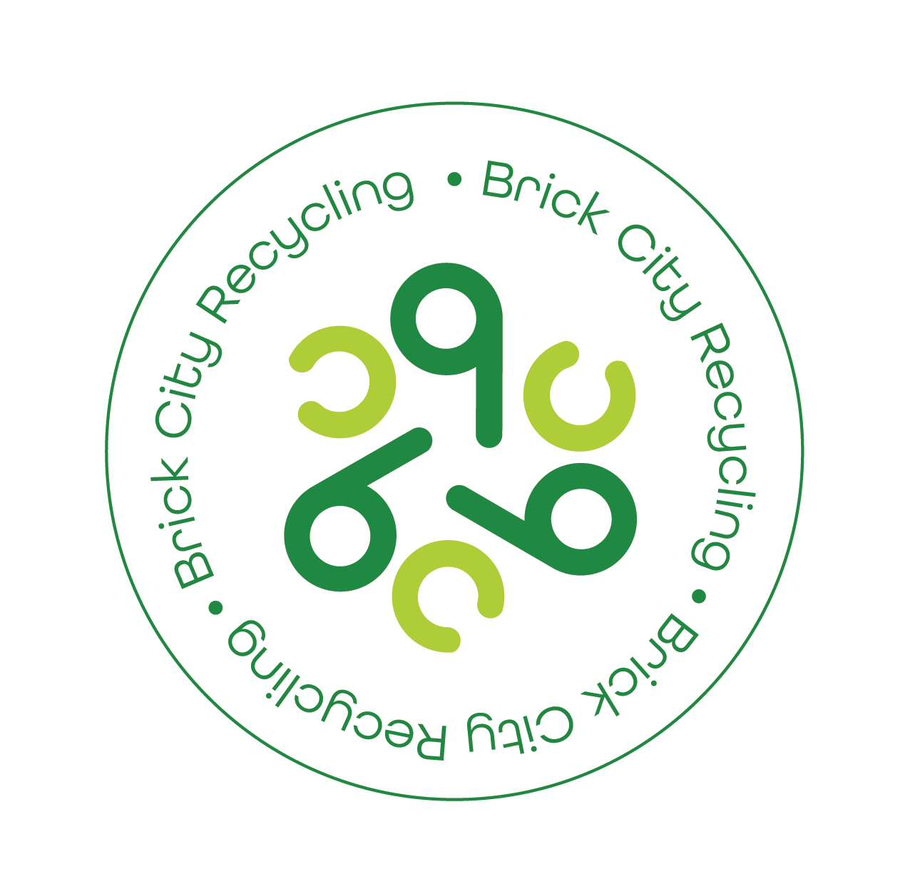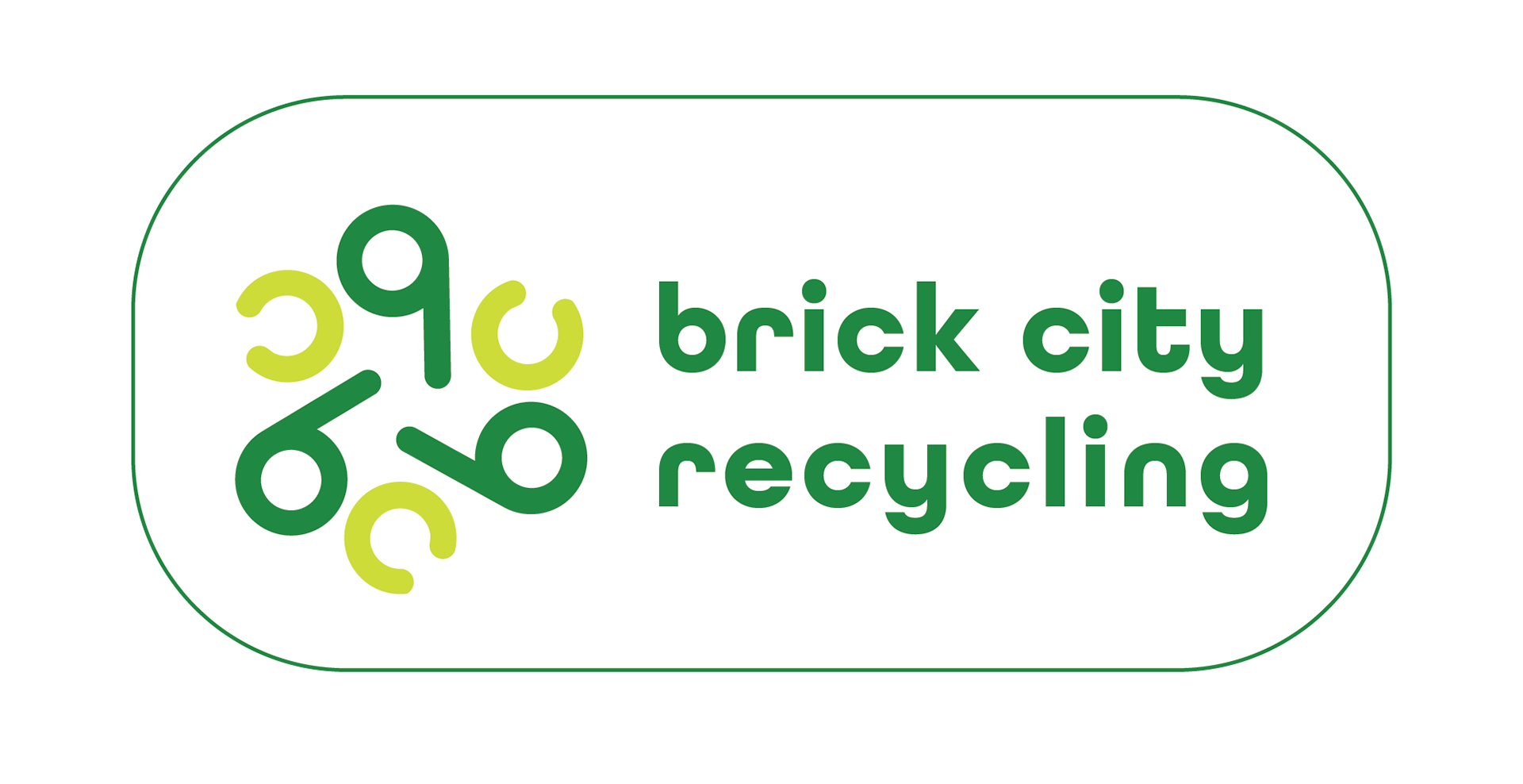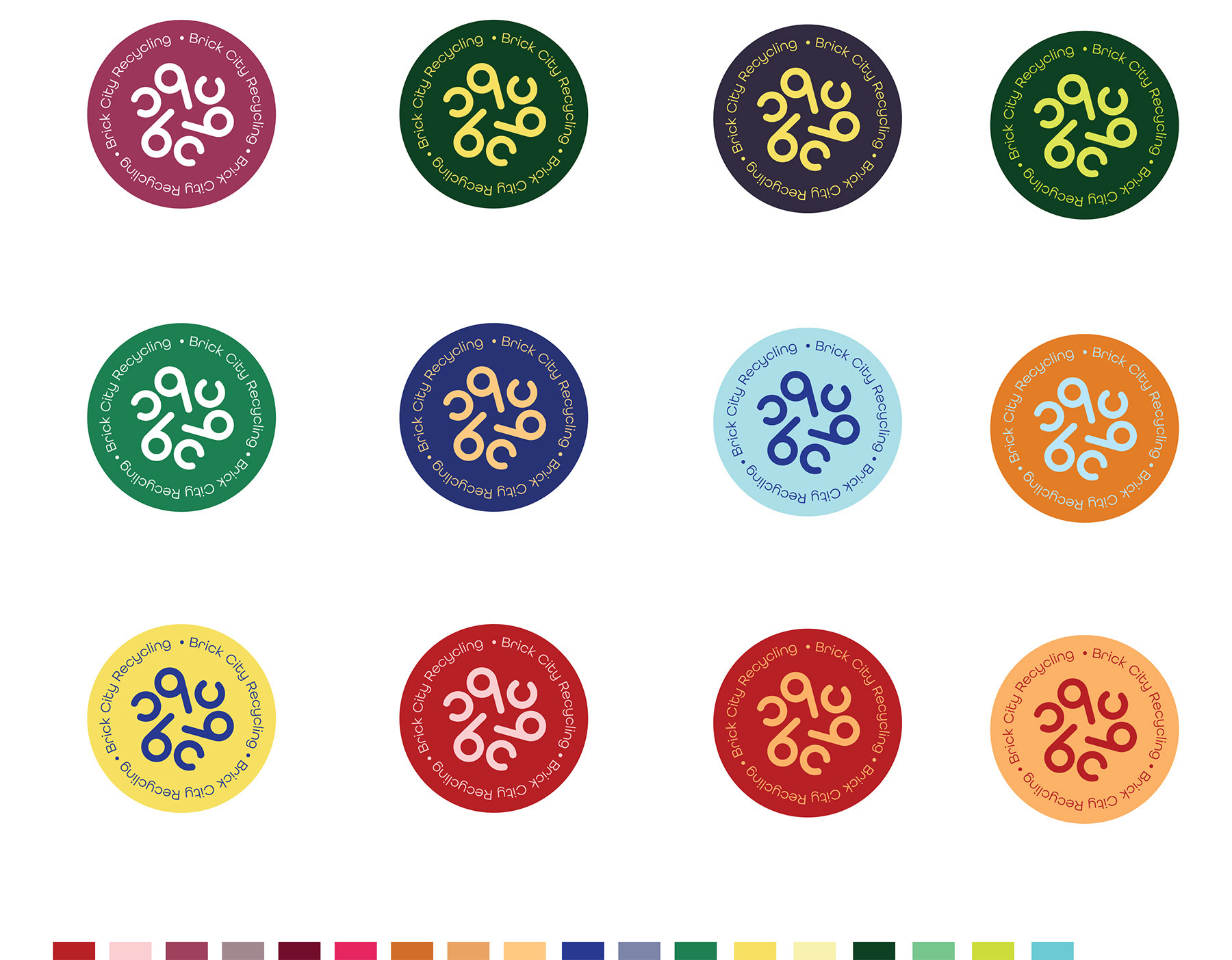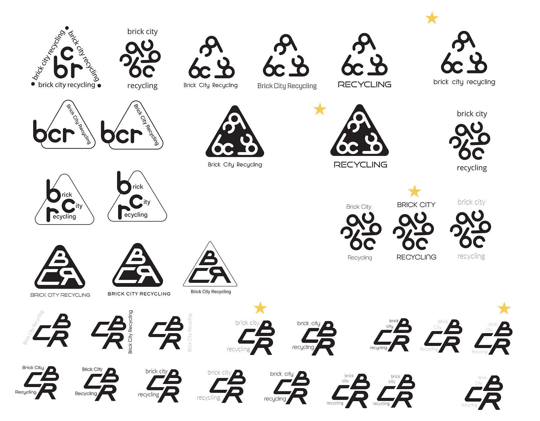 I paired this shape with the "brick city recycling text in All Round Gothic. The letters in the logo are custom, but have a similar construction to the All Round Gothic text used for the rest of the text.