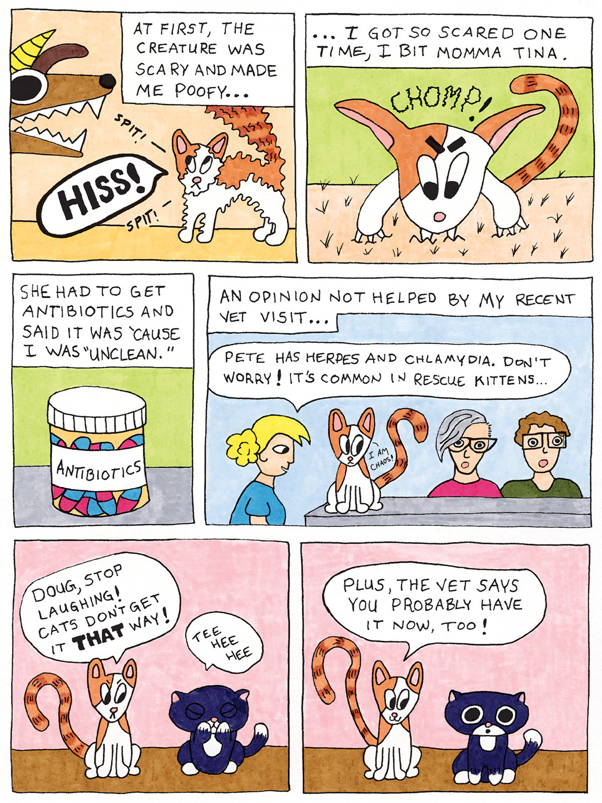 Excerpt of a comic created for illustration class. I've expanded this project into a full page children's book. (Pen, ink and marker on bristol, 6" x 9", 2024).