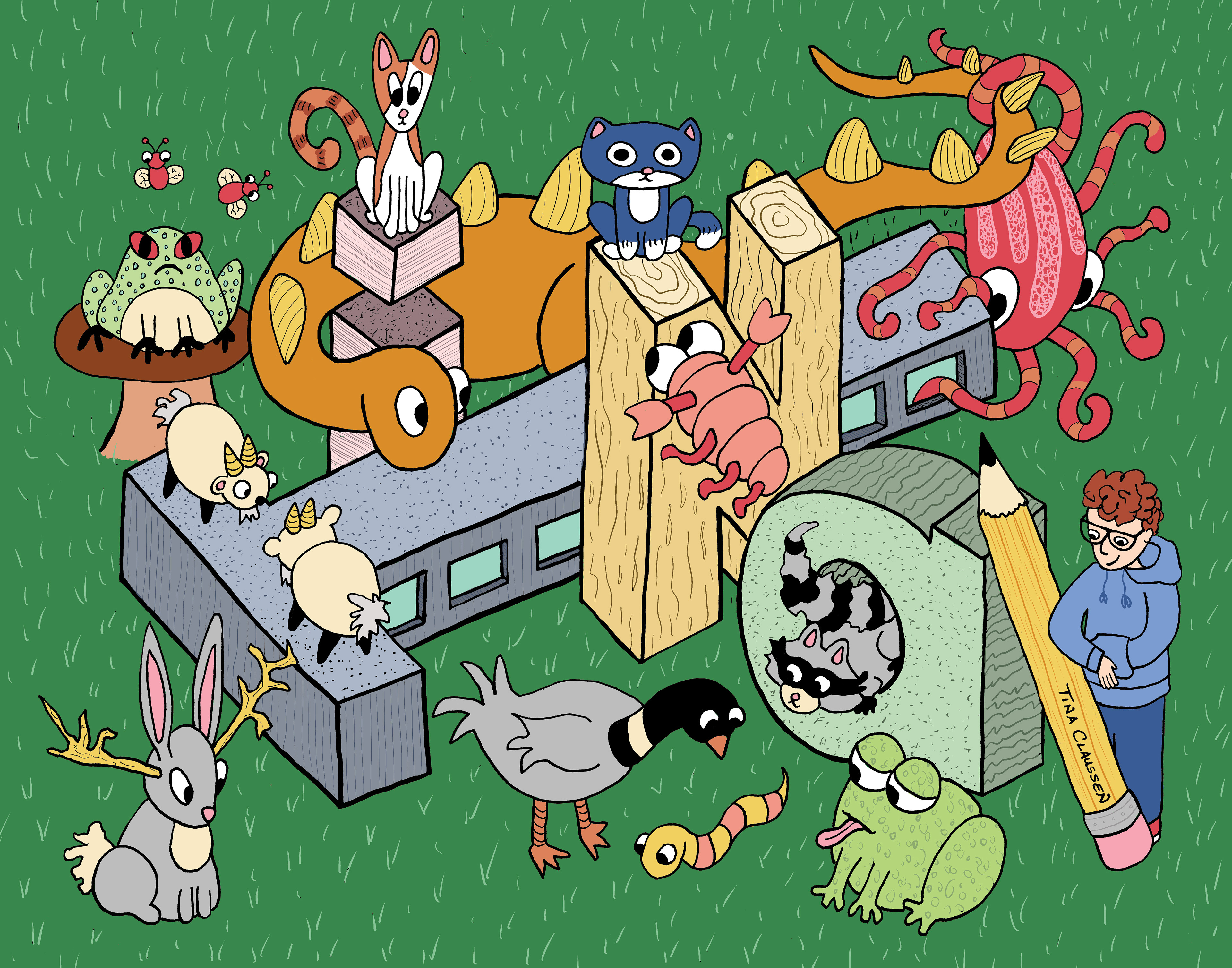 Created for a drawing class. Self portrait using letters of your name. Ink on bristol, digital color. (14" x 11", 2024).