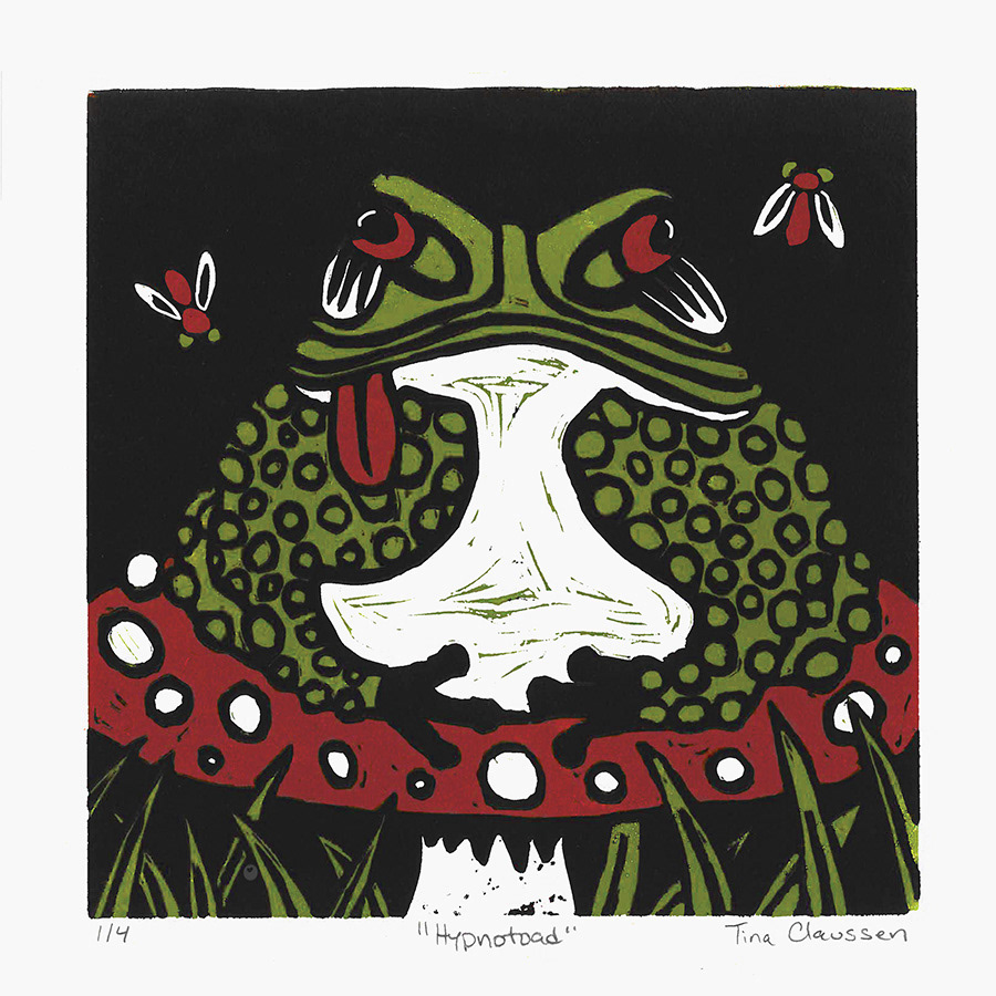 Linocut print created for printmaking class. (linocut, 8" x 8", 2023).