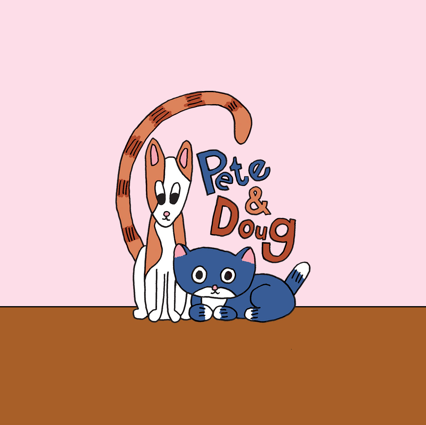 This logo is for a series of children's books that feature my cats Pete and Doug. The logo is meant to be used for the covers of each book (to denote they are part of the series). It can also be used for other merchandise as the series grows. To construct the logo, I used the two illustrated characters along with a hand lettered text. The letters are simple and based loosely on typefaces like Helvetica. However, they feature letters of non-uniform sizes and orientations to make them more visually interesting and to better fit the aesthetic of children’s books. I also used the tails of the two cats as a framing device, a convention that shows up throughout the two existing books in the series. (2024)