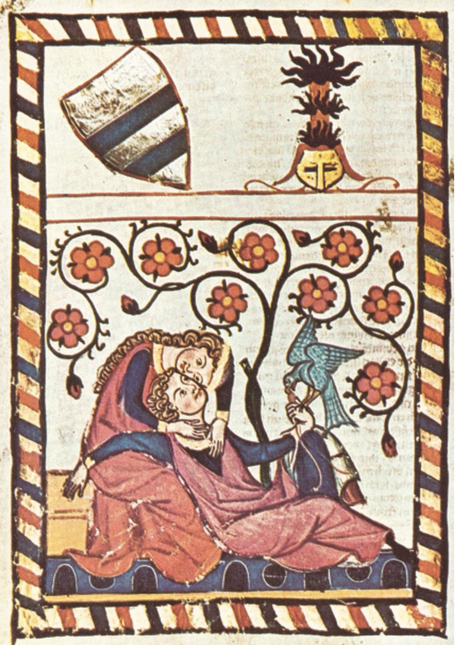 For this project I wanted to avoid common cliches like using masks or obvious love images. I did some visual research on the concept of "courtly love" and came up with the following image, which I used as the basis for the color palette and floral concept.