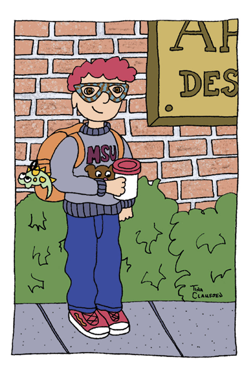 Created as an assignment for an illustration class. Yearbook style self-portrait. (digital, 6" x 9", 2024).